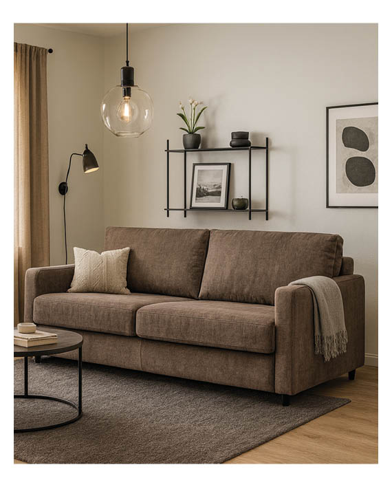 Aida sovesofa kombinerer kvalitet, komfort og funksjon i et tidløst design – en praktisk løsning som gir deg mer plass og fleksibilitet i hverdagen.